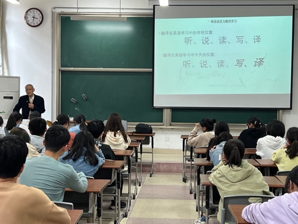 在此后进行的题为“新时代的翻译教师更应自强”的讲座中,两位教授分别就翻译教学以及教师职业发展与外院师生展开进一步交流,逐一解答外院青年教师在翻译教学、科研以及工作学习过程中遇到的问题,加深师生对于翻译意义和作用的认识,帮助师生明晰未来研究方向和职业规划。
