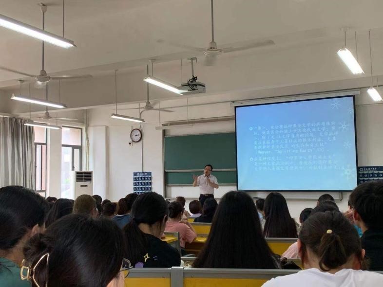 在第一场报告中,陈靓教授围绕美国本土裔文学的族裔性建构问题,从语言载体、语言形式以及历史文化语境三个维度探讨族裔性的复杂张力和生成性内涵,并通过理论层面的世界主义和实践层面的民族志诗学结构,就族裔性的语言传统特质和不同文化语境间动态的阐释空间等问题进行详细论述,与外国语学院领导、青年教师和学生代表就文学研究方法以及英语学科建设等问题也进行了热烈的讨论和交流。