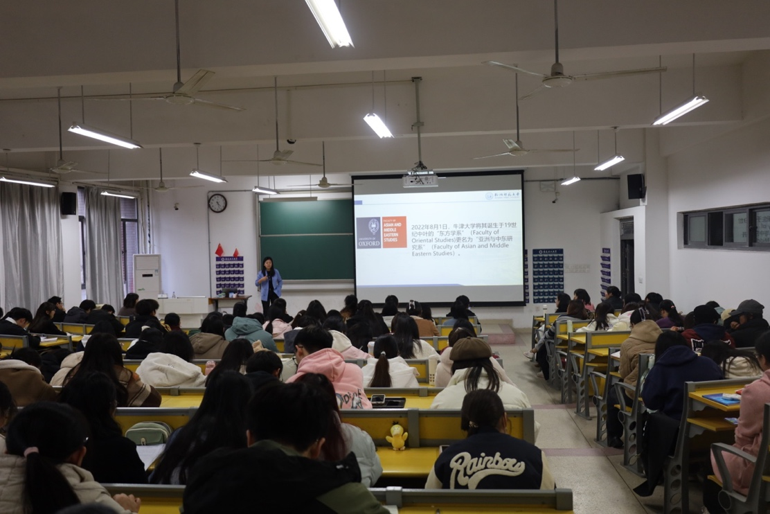 11月22日下午,应科研部、外国语学院邀请,杭州师范大学外国语学院院长、博士生导师、教育部长江学者特聘教授周敏在天工南216为外院师生带来“区域国别学的语言文化构建路径”的学术讲座,学院师生共计170余人参加,讲座由学院副院长周宁主持。